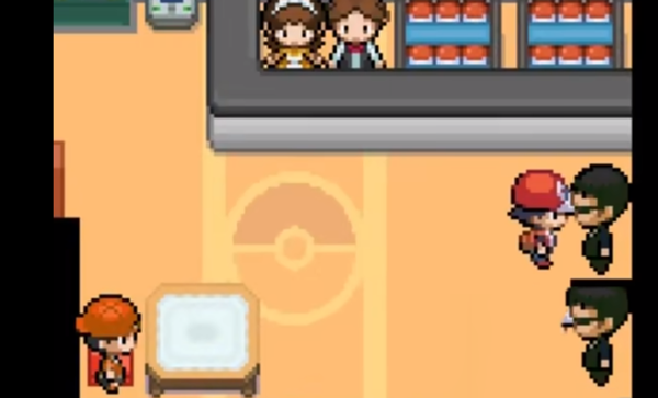 2、进入宝可梦中心后,直接前往二楼,与最里面的那位穿着黑色西装的NPC进行对话。