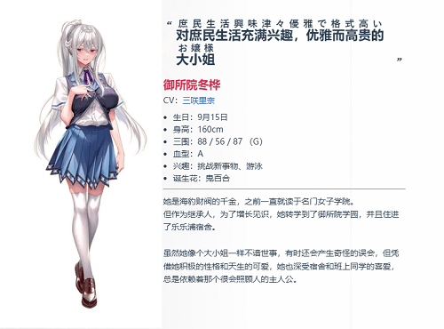 为了更好地了解社会,她以继承人的身份转入御所院学园并入住宿舍。