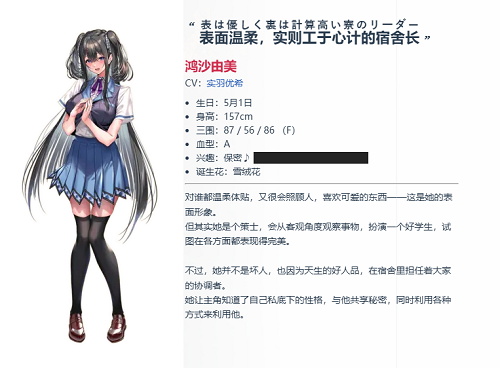 校外常穿女仆装,性格沉静,让人难以捉摸其心思。