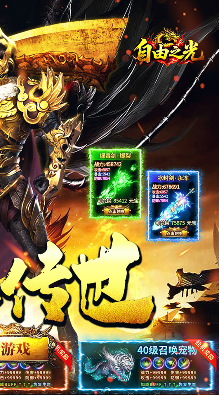自由之光是非常好玩的传奇游戏,提供了非常丰富的传奇职业,每个职业中都有着独特的技能,可以选择自己喜欢的职业激情的战斗,同时,还提供了非常丰富的boss分布在地图的各个位置,可以探索的地图的时候砍boss,高爆率的产出,可以获取大量的装备、稀有材料等,可以让自己快速的成长起来,不适合的装备、资源可以回收换取适合的资源,十分的好玩,感兴趣的小伙伴可以前来下载体验。