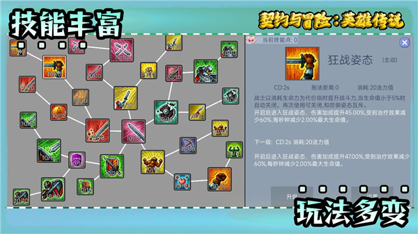2、英雄还可以通过契约解锁更多隐藏技能,让整个游戏更加考验玩家的策略。