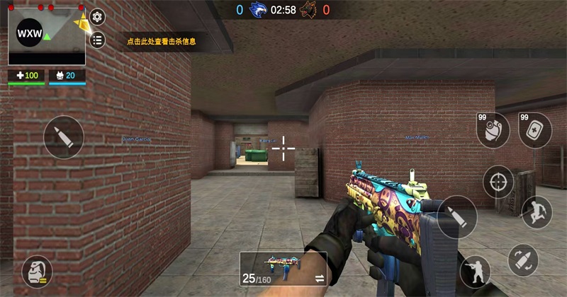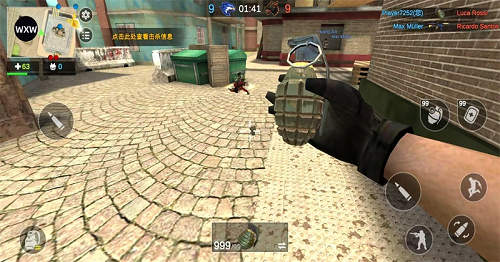 5、操作方面,左侧用来控制角色移动,右侧负责瞄准、射击,同时可以进行投掷手雷等战术操作。