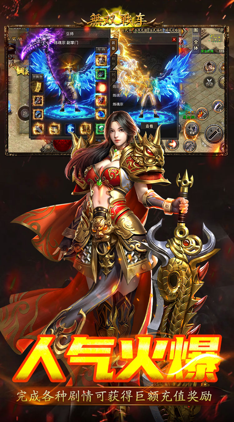 无双战车是一款经典复古传奇角色扮演游戏,非常好玩刺激。在这款游戏中,玩家可以随时参与激烈的比赛,获得更多奖励。你可以用这些奖励换取更高级别的武器装备,这样你就可以成为整个游戏世界中最强大的玩家。还能体验传奇玩法带来的乐趣,随时轻松上手。快来下载体验给你喜欢的玩家吧。