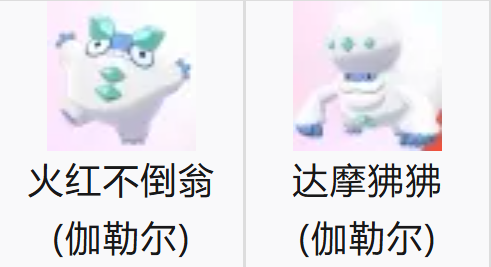 1、火红不倒翁(伽勒尔)、达摩狒狒(伽勒尔)
