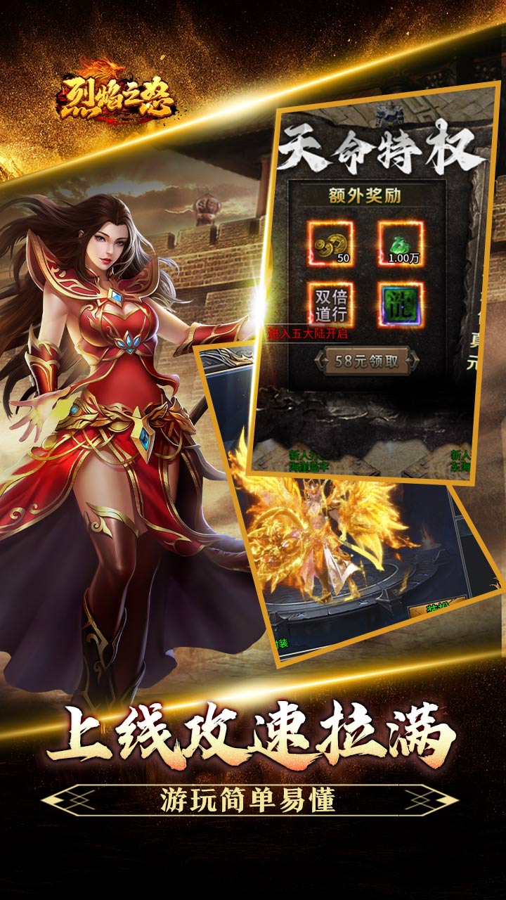 烈焰之怒是非常激情的传奇手游,提供了非常丰富的福利,每日登录之后就可以在线领取自动回收、自动拾取、自动使用等,方便自己在看boss的时候不会被其他敌人掠夺,同时,还提供了非常丰富的玩法,拥有着各种pvp和pve的玩法,随时可以在线尽情的战斗,十分的好玩,感兴趣的小伙伴可以前来下载体验。