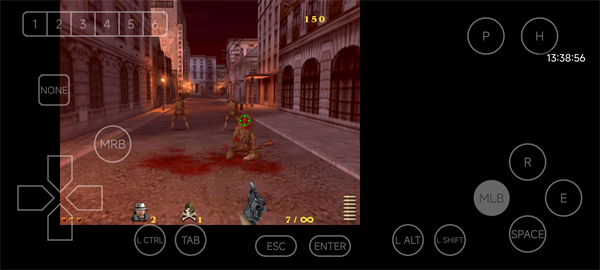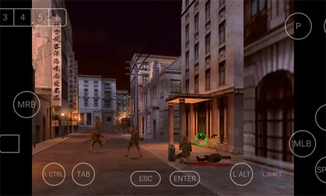 虚拟按键对应说明:MRB=鼠标左键(射击)、MLB=鼠标右键(换弹/开镜)、方向键=移动视角、SPACE=跳跃、ENTER=确认。