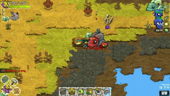清理掉周围的小怪物,然后引诱红色的大电力龟头过来。接下来,就围着墙走,像放风筝一样,把红色的大电力龟头卡在墙的侧面。
