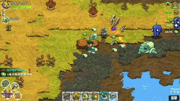 当电力龟头被卡住后,它就无法攻击你了。如果偶尔攻击,它也会被墙挡住,没什么威胁。对于粉色的电力龟,虽然它的近身电可以造成伤害,但你可以承受,记得要耐心。