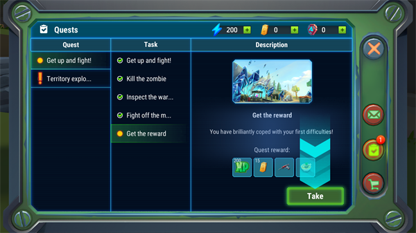 6、在任务栏里可以查看当前目标任务,完成之后还能拿到各种不同的奖励。