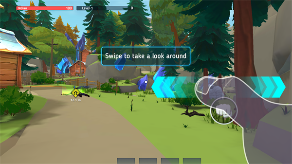 3、游戏操作其实挺简单的,滑动屏幕右侧可以调整视角方向,左侧的摇杆则用来控制角色移动。