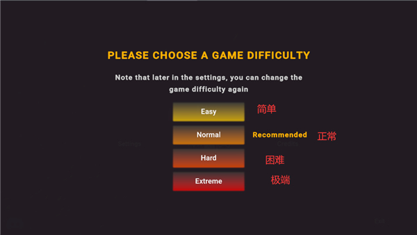 1、进入游戏后在英文界面中选择对应内容,然后挑选一个适合自己的游戏难度。