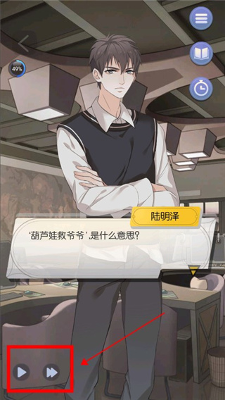11、后续的剧情发展和对话需要玩家手动点击才能推进,如果觉得麻烦,可以选择左下角的播放按钮,让剧情自动播放。