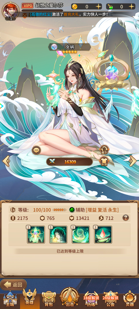 核心输出:女娲(主打群体爆发,清场能力很强)、洛神(持续打伤害,慢慢压血线)。