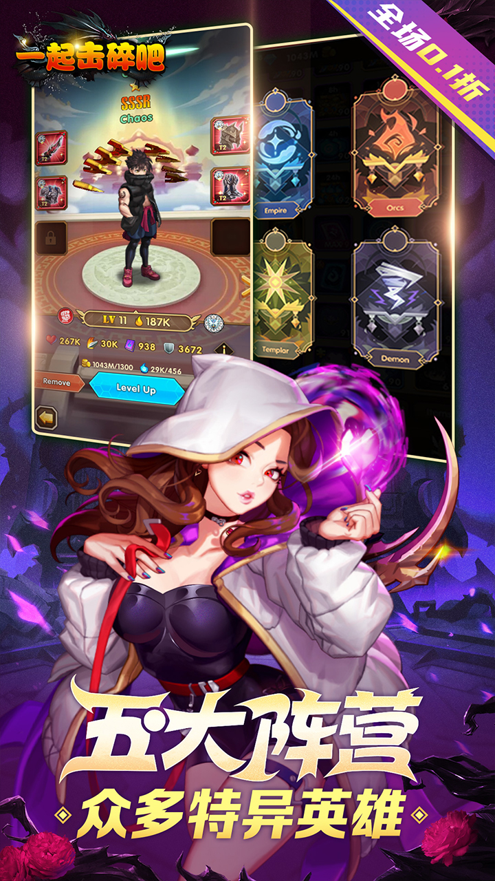 3、一起击碎吧内置0.1折不断升级和优化装备,增强角色的战斗力和生存能力。
