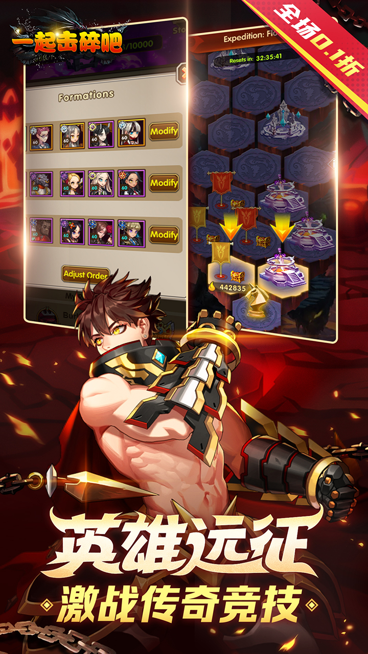【巅峰挑战竞技场】一起击碎吧内置0.1折多种竞技场玩法,所有玩家可以公平组建英雄战队,争夺胜利。