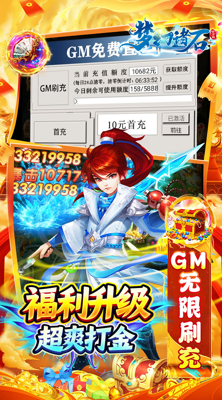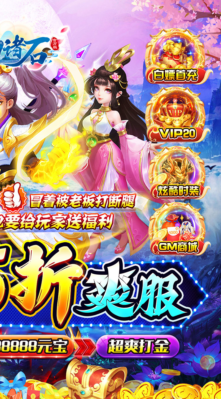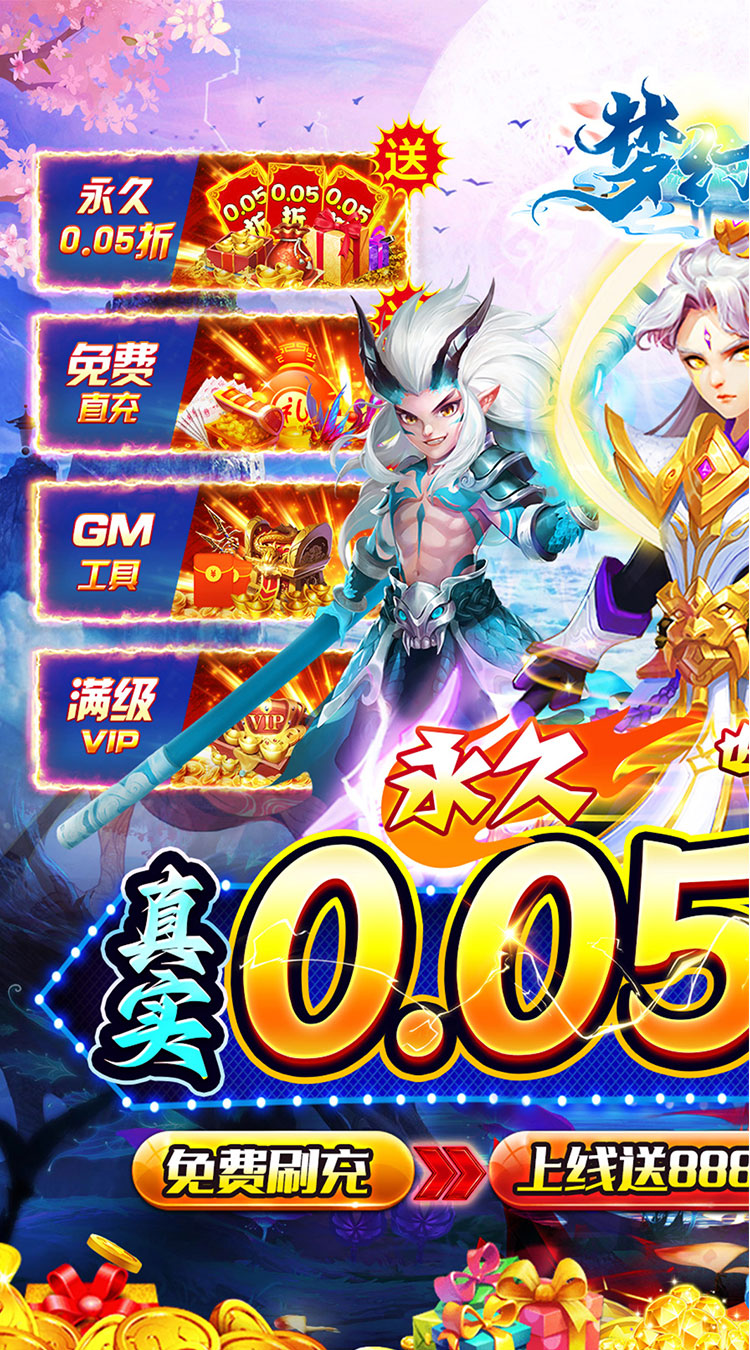 梦幻诸石官方版(0.05折GM破解刷充)sss有着超级强的充值比例,强大的折扣力度让我们每一个玩家玩到暴爽,而且上线就会赠送GM免费刷充工具,轻松挂机刷怪养老,登录注册就送满级vip,海量元宝送到爽,只需一元就可以嗨购全场,连续登录就可以领取各种豪礼,还有各种神兽礼包等你来领哦,感兴趣的小伙伴欢迎在线游玩哦。