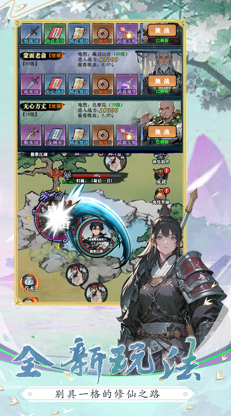 1、放置空闲游戏可以轻松获得经验值和资源,多种武术,自由结合,创造出独特的战斗风格。