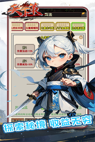 1、招募人才,安排军队,用你的智慧和勇气成为三国时代的统治者。轻松培养强大的角色,踏上激动人心的冒险之旅。