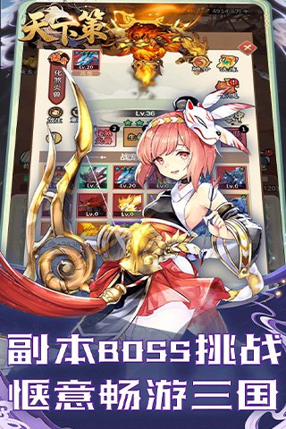 天下策手游以三国为背景的策略型游戏,它原汁原味的还原了三国经典的战役,让玩家可以享受每场战役博弈的快感,它为玩家提供了各种副本挑战,让所有的玩家可以惬意畅游三国,在这里也为玩家提供了各种丰富的福利,让玩家可以升级自己的装备,能更好的体验游戏,感兴趣的玩家可以前来在线游玩。