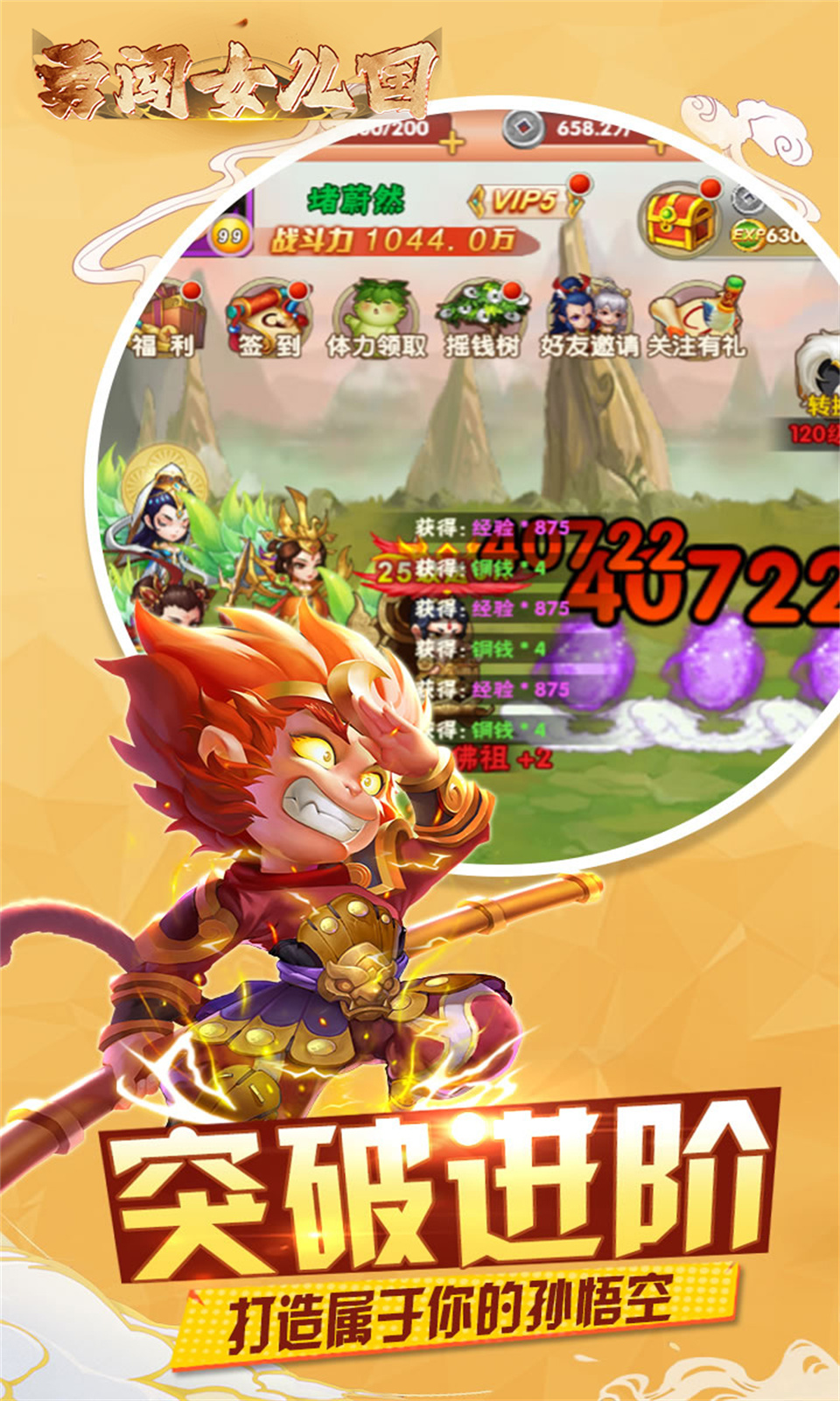 2、突破高级系统使玩家可以自由培养自己的角色,创造一个独特的孙悟空,体验从一只普通猴子到大圣人的成长过程。