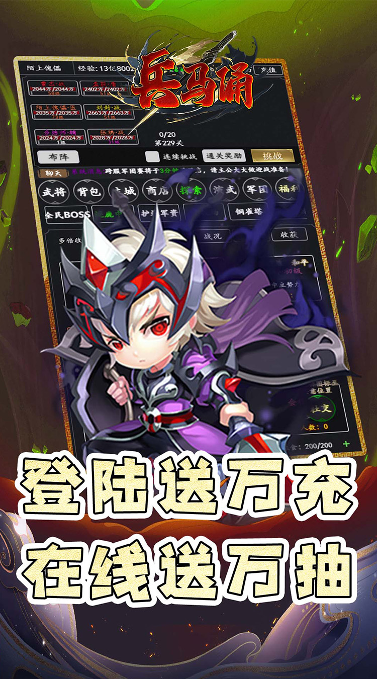 兵马俑游戏以三国为背景的文字游戏,它采用Q版卡通的游戏画风,独特的文字玩法,给玩家带来了不一样的游戏体验,在这里它还为玩家提供了非常丰富的游戏福利,所有的玩家随时都可以找到超低折扣,玩家低充值可以获取更多的游戏福利,当然,玩家连续登录也可以获取福利哦,感兴趣的玩家可以在线游玩。