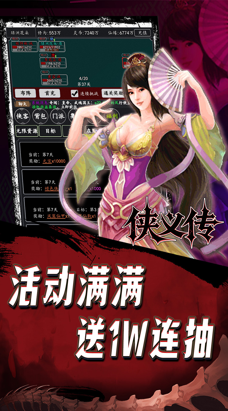 侠义传是非常特别的武侠游戏,采用了文字的方式展示给小小伙伴,让小伙伴拥有着不一样的游戏体验,同时,也为小伙伴提供了各种游戏玩法,其中拥有着副本挑战、任务挑战、装备升级等等,随时可以通过这些玩法来获取大量的奖励,可以用来升级自己的武器、装备、宠物等,让自己可以更好的体验,非常有意思,此外,还提供了很多超低折扣,可以低充值获取大量的奖励,十分的有趣,感兴趣的小伙伴可以前来在线游玩。
