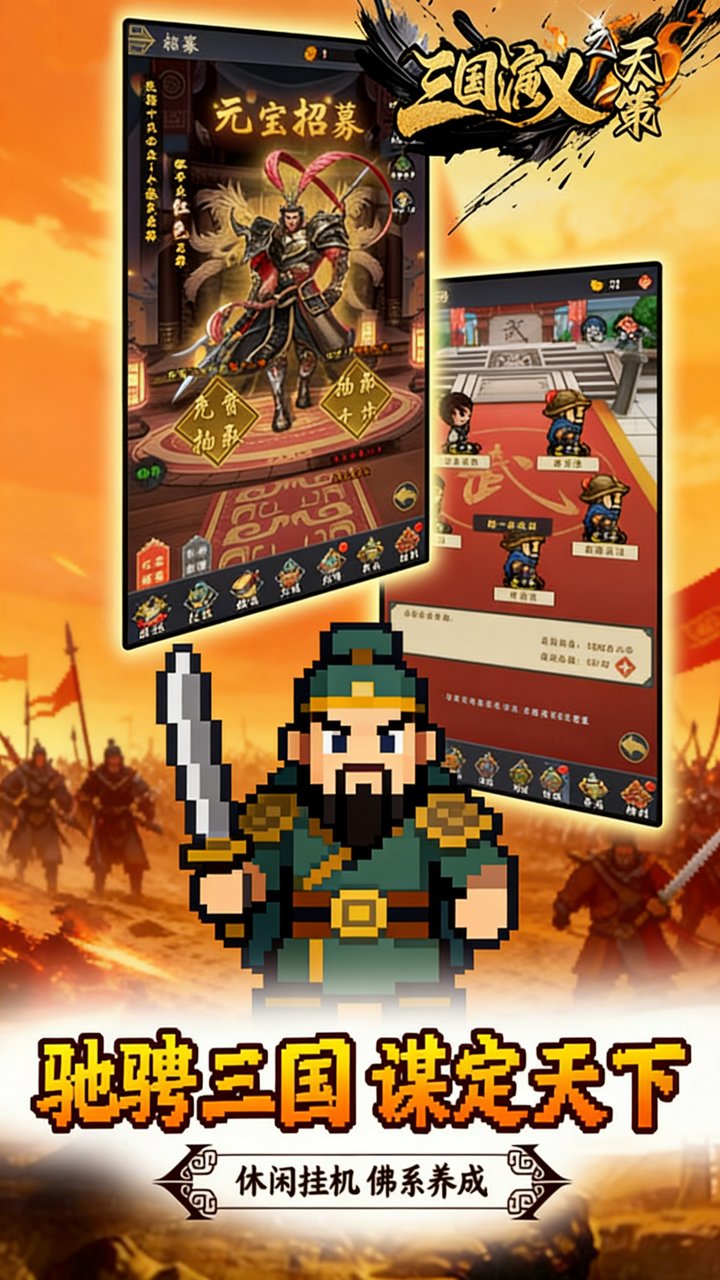 三国演义之天策是一款以挂机为核心玩法的休闲回合制游戏。它融合了传统回合制战斗和自动战斗的优点,让玩家可以轻松享受游戏过程。游戏画面简洁明了,操作简单易懂。无论你是新手还是资深玩家,都能快速上手。在像素三国志中,你可以选择不同的角色和职业,体验不同的技能和装备,挑战各种高难度副本和BOSS。同时,游戏还提供了多种玩法,如剧情关卡、挑战模式、多人竞技等。让你自由选择搭配,满足不同需求。