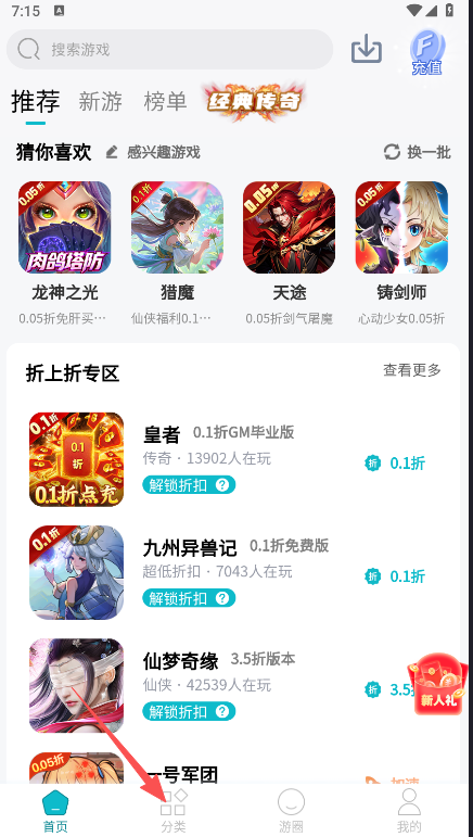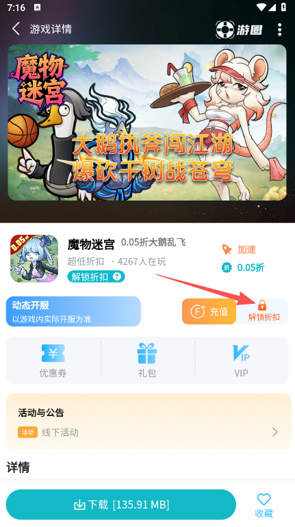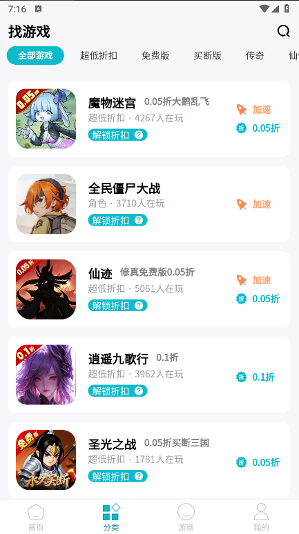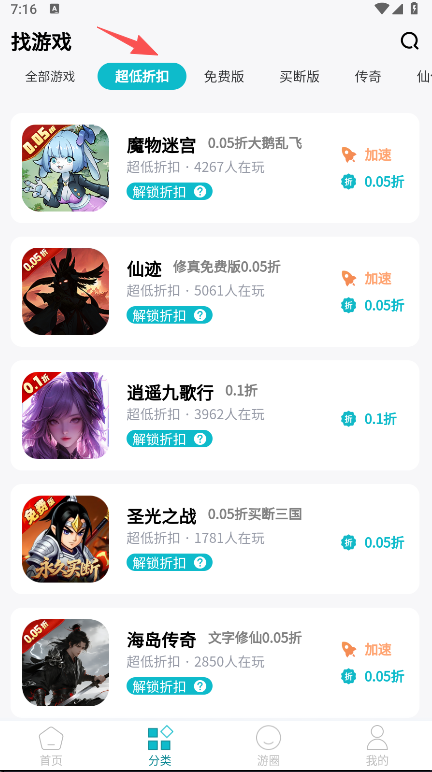 5、找到自己喜欢的游戏,点击进去,找到解锁“折扣”即可。