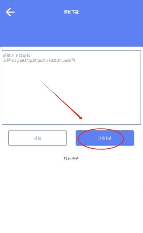 2、在输入框中手动输入或粘贴磁力、HTTP 等下载链接,点击 “开始下载” 即可。