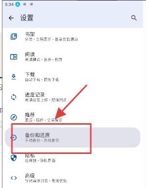 2、在设置中找到 “备份与还原” 功能入口并点击,可看到备份相关操作选项。