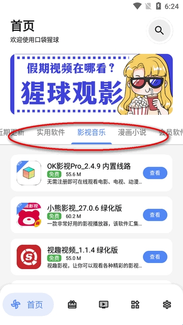 1、口袋猩球根据软件资源的类型进行相应的发现,可以很好地完成资源内容的选择。