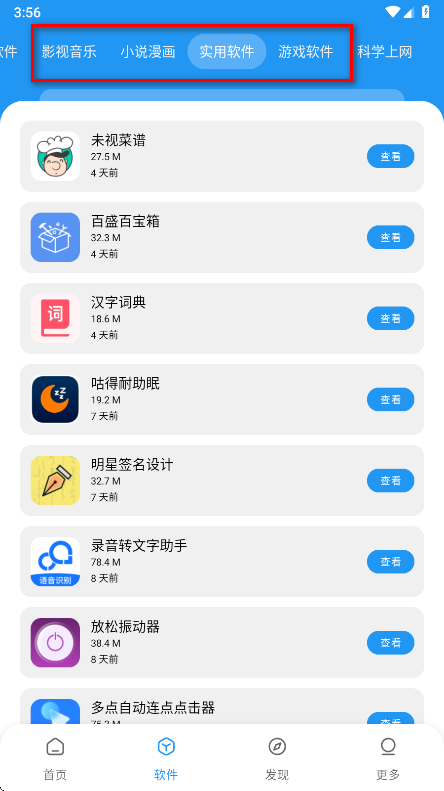 2、软件列表中分类展示多种类型的软件,可根据需求浏览对应分类下的资源。
