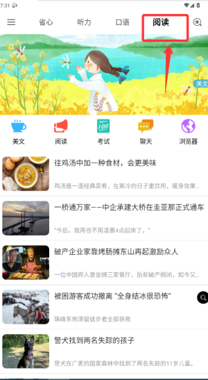 3、提供双语阅读材料,包括美文、段子、故事等,帮助用户提高阅读理解能力。