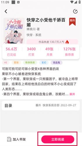 2、进入小说详情页后,找到右下角的 “阅读” 按钮,点击即可进入阅读界面。