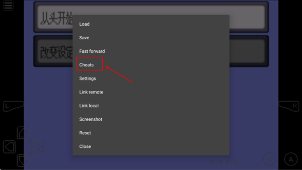 1、首先打开GBA模拟器,运行你想玩的游戏后,点击界面上的图标进入设置,选择“Cheats”选项。