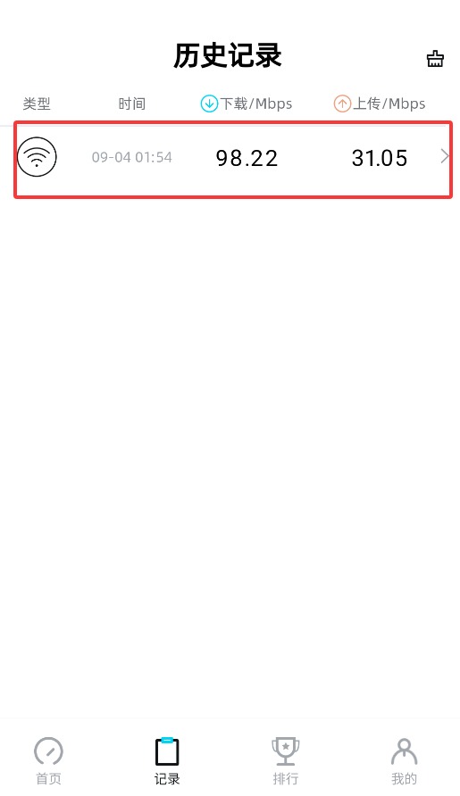 4、历史记录保存所有测速数据,支持生成网速变化曲线图。
