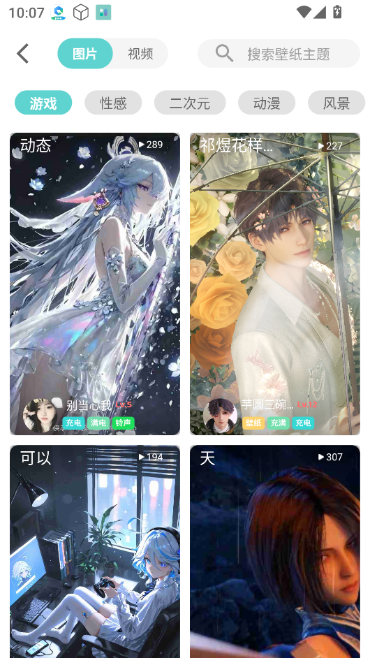 3、点击不同的分类标签,浏览各类风格迥异的壁纸内容。