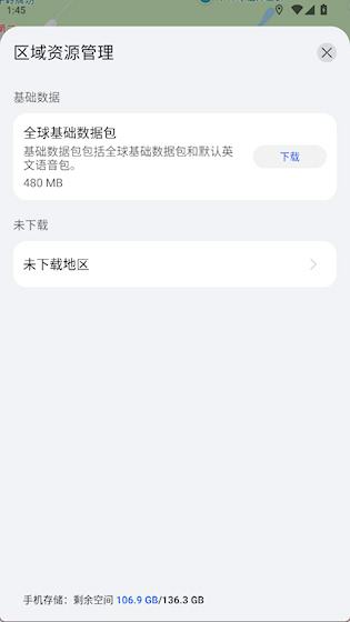 3、随后进入区域资源管理页面,在这里可以选择所需区域并下载离线地图以便离线使用。