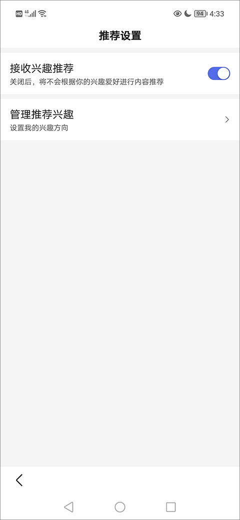 5、在推荐设置界面中,你可以对兴趣推荐内容进行管理,调整或删除不想看到的推荐信息,更精准地控制个性化内容。
