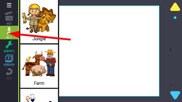 2、进入动画编辑界面后,点击“插入”按钮开始添加素材。