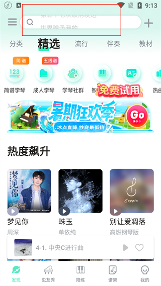 2、在软件首页或音乐库中,使用关键词搜索功能,可以快速定位到想要练习的曲目。