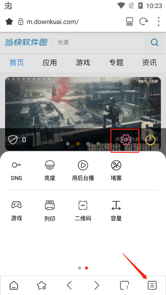 2、然后点击右下角的菜单按钮,再点击菜单上方的“设置”按钮,如图所示操作即可;