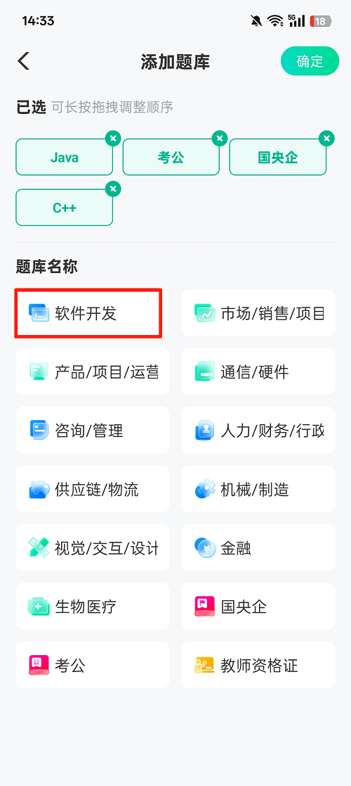 3、在题库里选择【软件开发】类别,专攻编程相关题目;