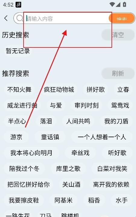 如果你知道歌曲名称或歌手名,可以在搜索框输入关键词进行检索,更快速地找到喜欢的音乐。