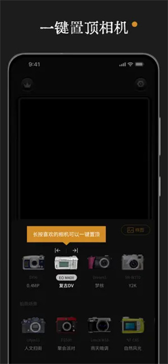 3、Reo复古相机支持用户根据个人喜好在顶部显示常用或喜爱的相机效果,快速创建专属相机库,让创作过程更加得心应手。